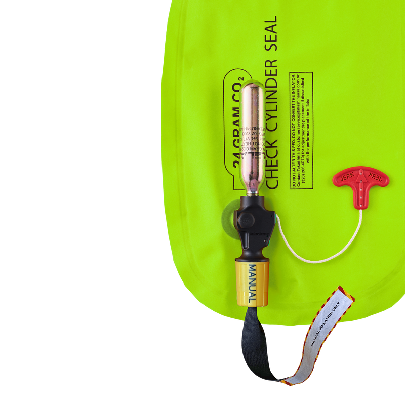 - This personal flotation device relies on an inflatable chamber that supply buoyancy when inflated by a CO2 cylinder